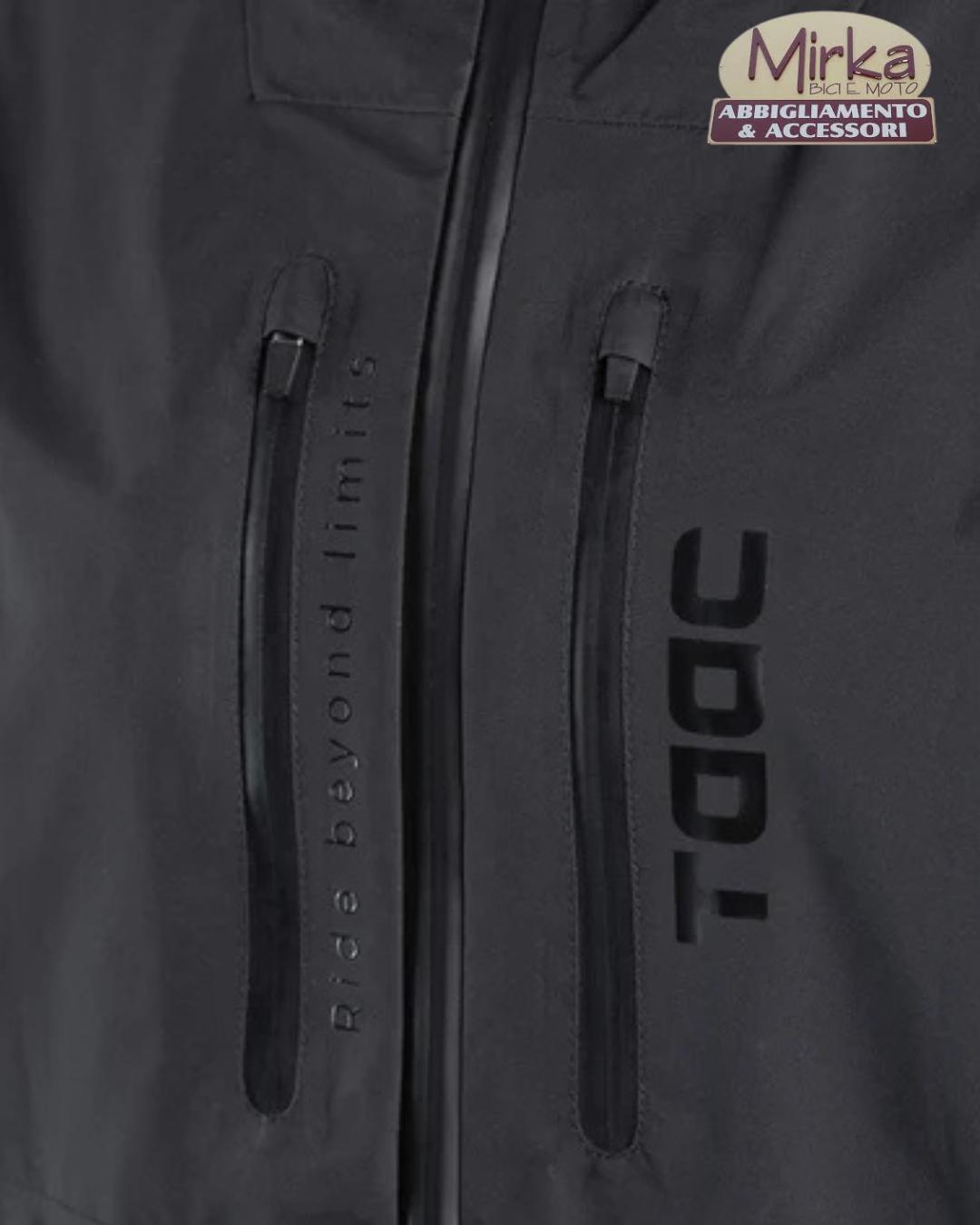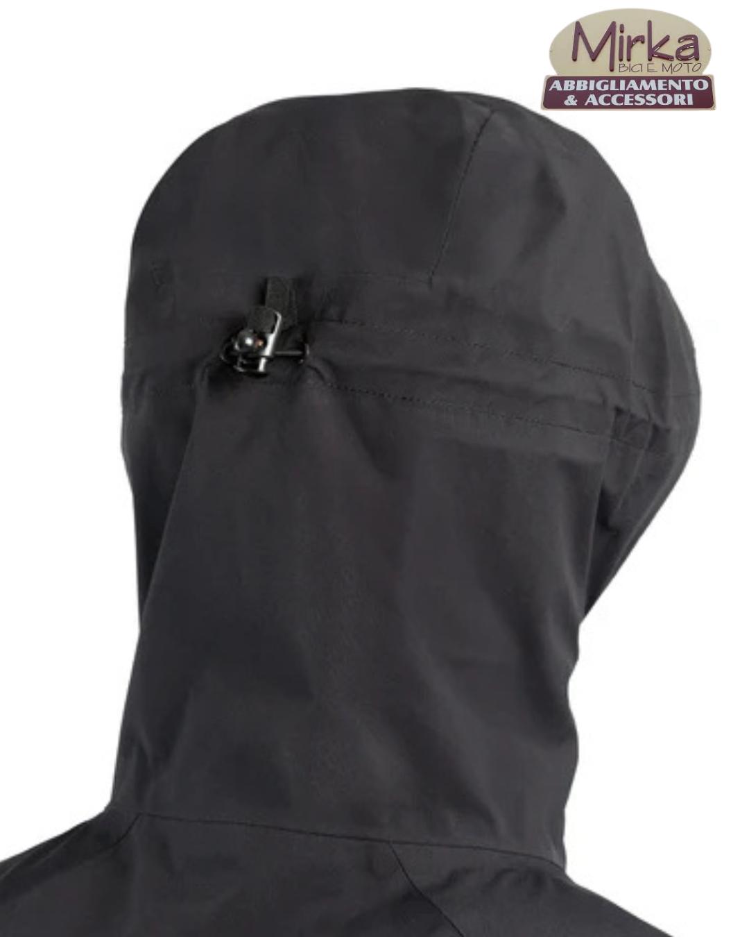 HYDROSCUD. Esterno a 3 strati: Poliestere con trattamento Water Repellent, membrana traspirante antivento e impermeabile, rete 15D di poliestere. Cuciture nastrate. Cappuccio indossabile sopra e sotto il casco. 2 tasche con sistema di ventilazione sul petto. Inserti rifrangenti sulle braccia e sul la zona lombare. regolazione con coulisse in fondo.
