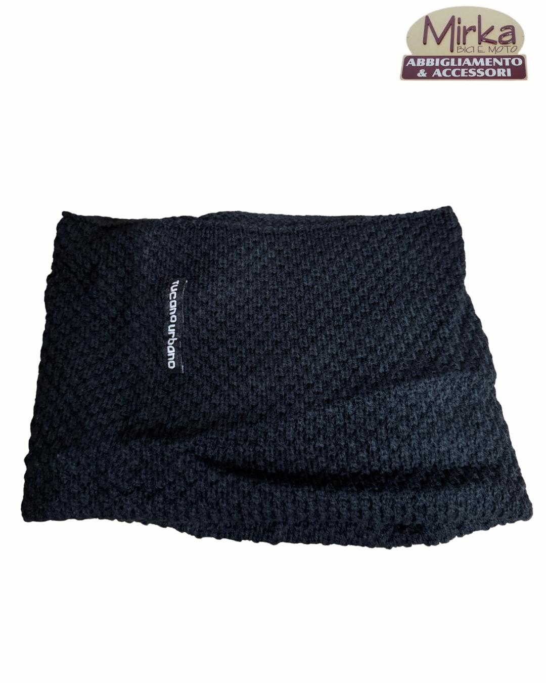 Collare ad anello multiuso in maglia con trama a grana di riso. Acrilico. Utilizzabile in sostituzione della sciarpa, come collare o fascia.